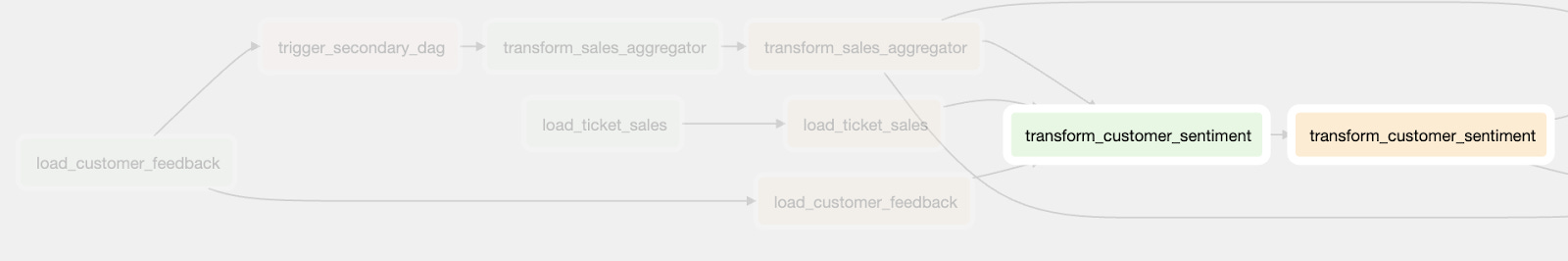 Now let’s look at an event-driven DAG with no fixed schedule: transform_customer_sentiment.