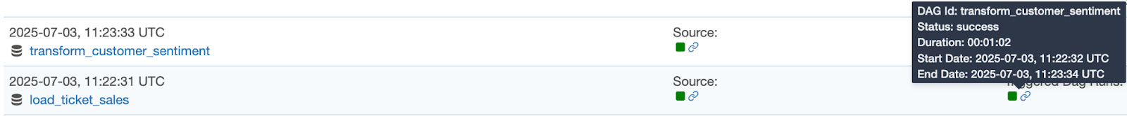 And yes—it was triggered just one second later than predicted and finished two seconds later than expected. Even better, Claude correctly identified that load_ticket_sales was the trigger.
