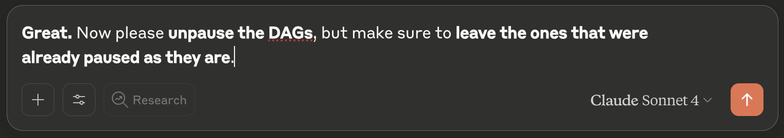Now comes the tricky part: restoring normal operations without unpausing DAGs that were paused before the outage.