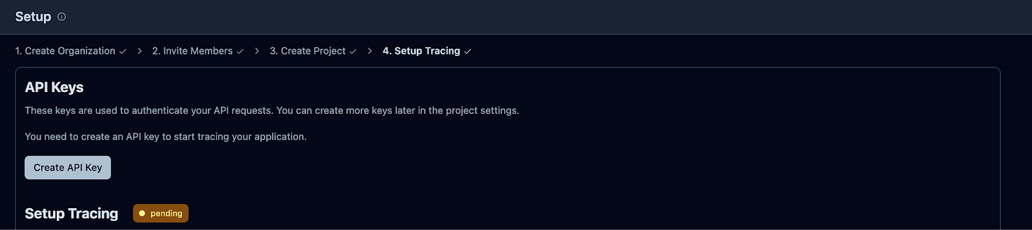 Then head over to the Langfuse dashboard. Open the "Tracing → Traces" tab: