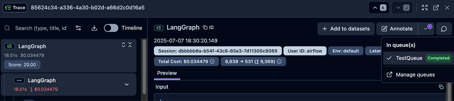 To address these questions, we turned to Langfuse, an elegant open-source tool purpose-built for developing, monitoring, evaluating, and debugging LLM applications. In this blog post, we’ll walk you through integrating Langfuse into your LangChain workflow—and specifically, how we’ve already done this within the airflow-chat plugin. You can follow along using our repo: https://github.com/hipposys-ltd/airflow-mcp-plugins.
